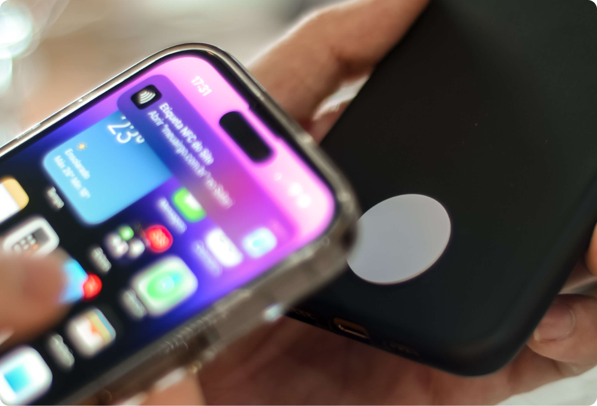 Display 100% personalizado com sua logo, imagens e cores. Com acabamento premium em resina e um chip NFC embutido para leitura por aproximação, conecte seus clientes a um perfil Airgo completo, incluindo suas redes sociais, cobranças via PIX, catálogo de produtos/serviços e mais.