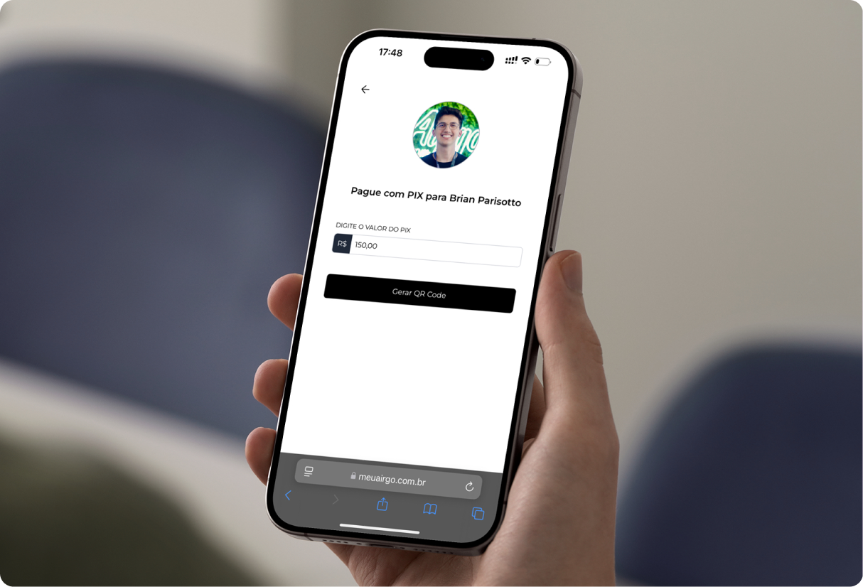 Com a ferramenta de PIX você pode gerar cobranças instantâneas através do seu Airgo e compartilhar de forma ilimitada. Seja por PIX QR Code ou chave PIX.