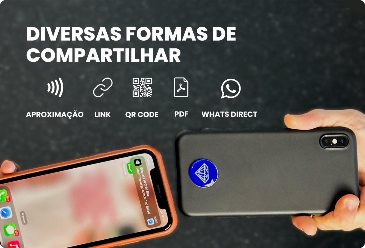 Escolha o modelo que mais combina com você: o Airgo no formato para fixar no celular ou o Airgo no formato cartão. Ambos possuem as mesmas funções inteligentes para compartilhar suas informações com apenas um toque.