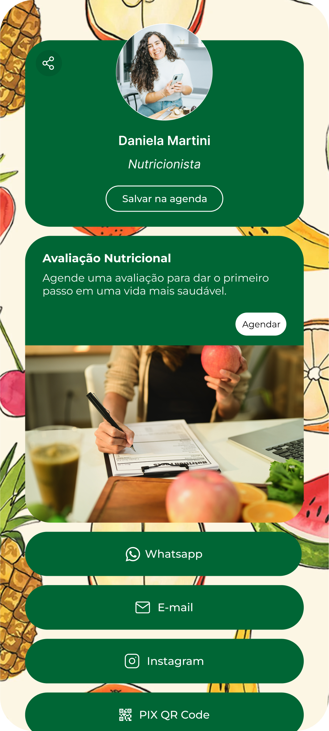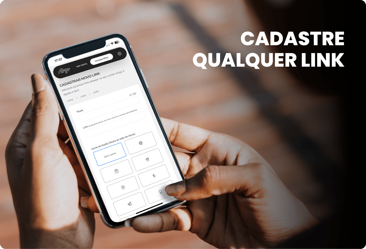 Compartilhe e cadastre quantos links desejar, sejam de redes sociais, sites ou botões de direcionamento. Você pode alterar a ordem dos links conforme sua preferência ou optar por adicionar apenas o ícone representativo em um bloco de ícones. E muito mais!